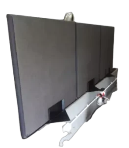Be the first to review “1000mmm x 1000mm Velcro screens with 3 steel base plates in dark grey fabric”
