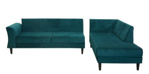 Barcelona Velvet LHS Sectional Sofa (2 + Lounger) In Teal green