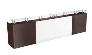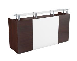 Omaru Reception Desk 2400 x 700 with tempered glass top in mahogany melamine