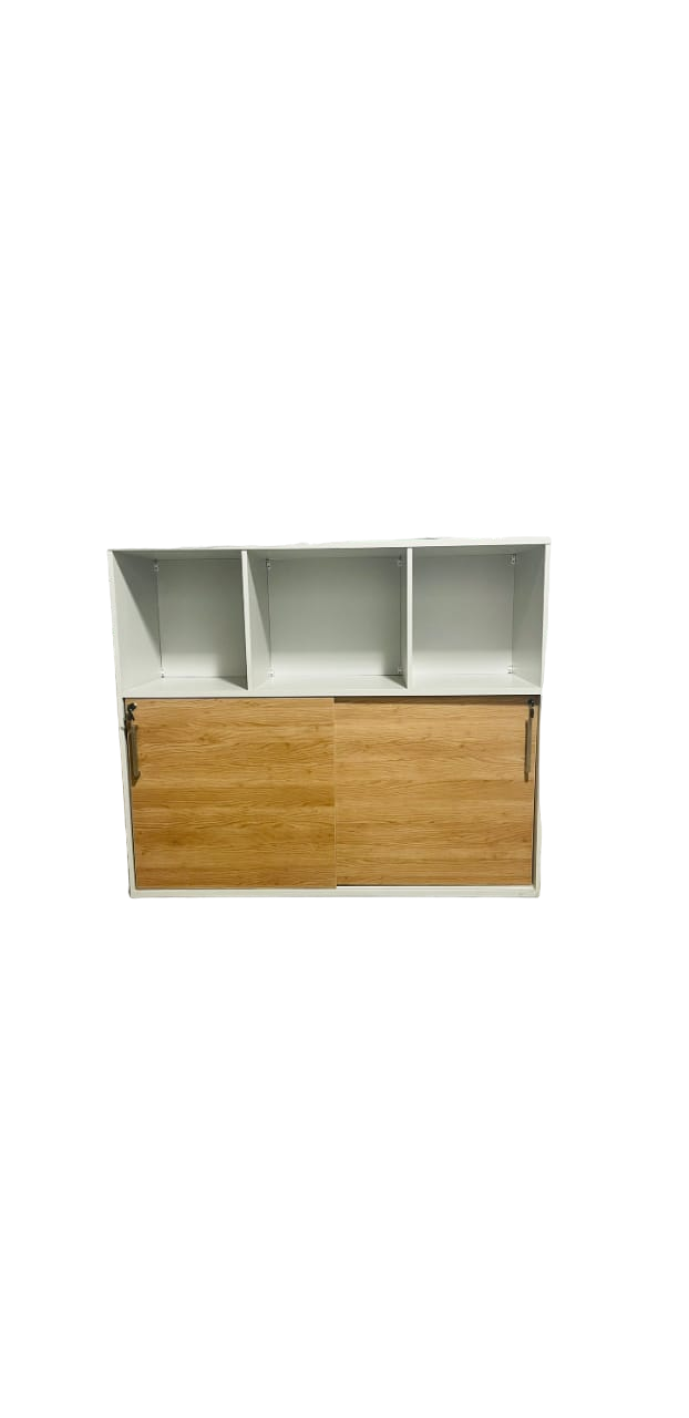 Be the first to review “Honey walnut server Sliding doors Chrome handles Lock included 3 / tier bookshelf Adjustable shelves Delivery included SIZES 120cm x140cm x45 cm” Cancel reply